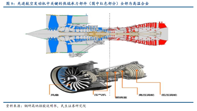 中游的飞机制造又可以分为航空材料制造、航空部件制造和总装集成制造三个子产业链。其中,子产业链中的上游航空材料供应商分别为机体、发动机和机载系统提供材料,主要材料包括钛合金、高温合金等。航空航天材料领域呈现高行业壁垒的特点,在技术能力、渠道资源、人才与团队、资质与认证等方面对企业要求较高,从而有效阻碍了新进入者,对业内既有企业形成保护,使业内普遍享有较高毛利。
