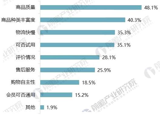 报告数据显示,在移动电商用户网购优先考虑因素分布中,商品质量成为用户最重要的考虑因素,占比48.1%;此外,商品种类丰富度、物流快慢等因素也受消费用户重视。前瞻产业研究院分析师认为,产品质量始终是吸引消费用户与增强其消费信心的重要基础,同时,优化服务和产品体验也成为移动电商用户对新零售业的期待。