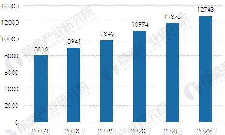 2017-2022年我国燃气发电装机容量规模预测(单位:万千瓦)