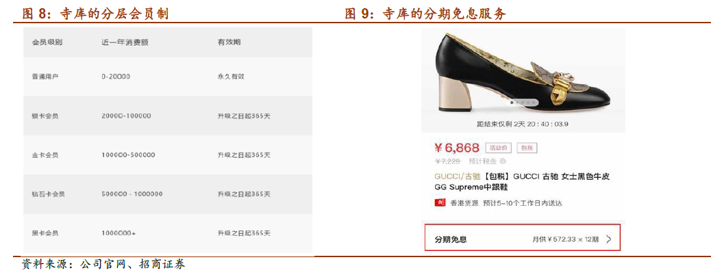发展历程:二手奢侈品售卖vs 尾货销售和代运营。如我们在之前报告《寺库:全球高端消费品服务商—电商对比研究系列之一》所述,成立于2008 年的寺库以二手奢侈品售卖起家,同时发展奢侈品鉴定业务。积累一定用户流量后,寺库转型奢侈品电商,并专注于自营和同奢侈品品牌建立合作关系,同时凭借自身奢侈品鉴定能力为商品质量背书,实现快速发展。