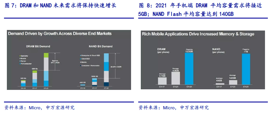 半导体销售创纪录,存储器市场成最大主要推动力。2014-2016 年全球半导体销售额基本变化不大,而2017 年半导体销售额同比增长21.6%,达到创纪录的4122 亿美元,这主要得益于存储器市场的高速增长。2016 年下半年开始,由于存储器市场供需格局反转,供不应求的局面逐渐愈演愈烈,产品价格持续上涨。受此影响,2017 年存储器市场销售额大幅增长61.5%,达到1240 亿美元,其中DRAM 销售增长76.3%至约728 亿美元,NAND flash 增长42.9%至492 亿美元。