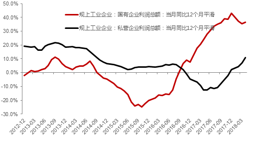 总体来看,产业上段的利润要好于中下段,这从PPI和CPI的不同涨幅中也可以看出,产业上段的企业以大企业居多,如石化、钢铁、有色、电力等。这实际上反映了供给侧改革背景下大型企业,尤其是国企的优势,因为它们既有资源的定价权,又可以获得较低的融资成本。