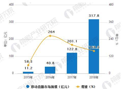 在移动直播方面,前瞻产业研究院数据显示,2017年中国移动直播行业市场规模突破百亿元大关,达到119.5亿元,随着行业技术的成熟以及行业盈利手段的多元化,市场规模将进一步增长,预计2018年中国移动直播行业市场规模将达到317.8亿元。