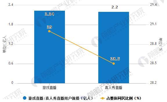据前瞻产业研究院发布的《网络直播行业商业模式创新与投资机会深度研究报告》统计数据显示,截至2017年12月,网络直播用户规模达到4.22亿人。其中游戏直播用户规模达到2.24亿,较去年底增加7756万,占网民总体的29.0%;真人秀百播用户规模达到2.2亿,较去年底增加7522万,占网民总体的28.5%。