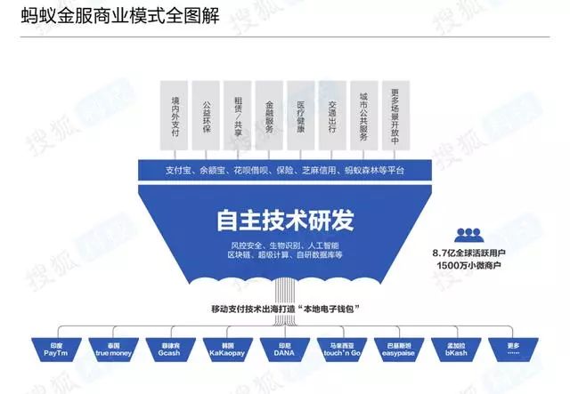 蚂蚁金服成立才三年多,1600亿估值现在看来只是起点,跟已经体量成型的亚马逊、谷歌、阿里巴巴、腾讯等全球互联网巨头相比,蚂蚁的商业模式才刚刚成型,全球8.7亿活跃用户和1500万小微商家仅仅只是蚂蚁的生态基础,根据蚂蚁融资材料显示,未来三年,蚂蚁将依靠“自主研发技术服务全球化”的核心战略,预计将服务全球一半的人口和商业生态。