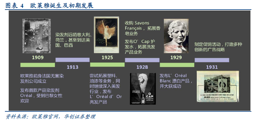 多种营销手法拓宽渠道、打造品牌。舒莱尔无论是在渠道拓展还是营销创意上都堪称大师。在销售方面,1909 年创业伊始便开始与媒体合作,与化妆品科学杂志La Coiffure de Paris 合作开始推广品牌,1912 年收购了该杂志。通过雇佣代表在法国各地销售自己的产品,与专业化妆师、宫廷美发师的合作诠释自身理念来提升品牌影响力。