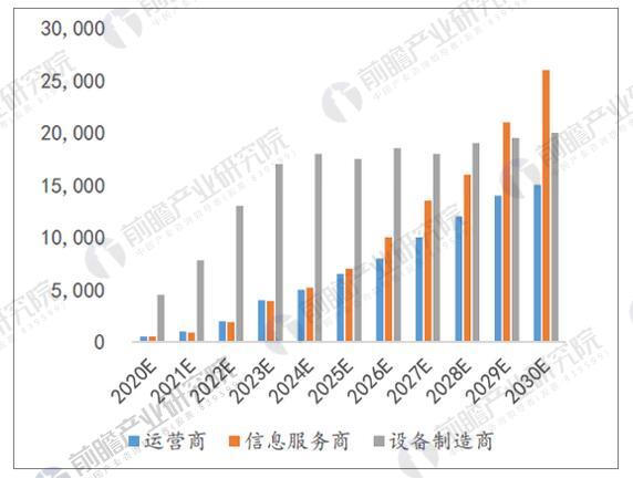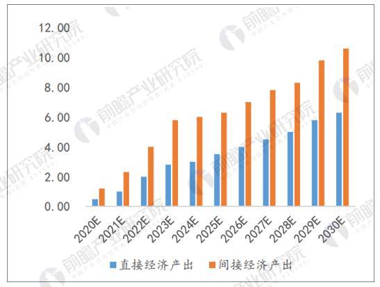 据前瞻产业研究院发布的《5G产业发展前景预测与产业链投资机会分析报告》数据显示,按2020 年5G 正式商用算起,预计当年将带动约4840 亿元的直接产出和1.2 万亿元的间接产出,到2030 年5G 带动的直接产出和间接产出将分别达到6.3 万亿和10.6 万亿元,两者年均复合增速分别为29%和24%。从产出结构看,在5G 商用初期,网络设备投资带来的设备制造商收入将成为5G 直接经济产出的主要来源,预计2020 年,网络设备和终端设备收入合计约4500 亿元,占直接经济总产出的94%。
