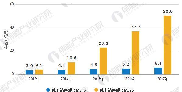 2013年-2017年国内扫地机器人线下及线上销售额