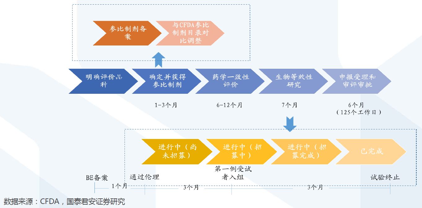 评价时间: 单个品种通过一致性评价周期约为20-28个月。单个品种通过一致性评价的周期约为20-28个月,其中:①确定并获得参比制剂需1-3个月;②开展药学一致性评价需6-12个月;③开展BE试验需7 月左右(从BE备案至试验终止);④申报受理和审评审批需6个月左右。