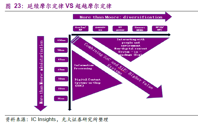 半导体产品主要分为四类,即集成电路、光电子器件、敏感器件和分立元件。其中,集成电路是一种微型电子器件或部件,采用一定的工艺把电路中所需的晶体管、电阻、电容和电感等元件及布线互联,制作在一小块或几小块半导晶片或介质基片上,然后封装在一个管壳内。按照导电类型划分,集成电路可分为单极集成电路和双极集成电路。单极型制作工艺简单,功耗较低,代表集成电路有CMOS、NMOS、PMOS 等;双极型工艺复杂,功耗较大,代表集成电路有TTL、ECL、HTL、LST-TL、STTL 等。按照功能用途划分,集成电路可分为逻辑器件、存储器、微处理器件及模拟器件四大类。其中,逻辑器件可分为标准逻辑IC 和专用逻辑IC,前者通过集成电路的组合实现各类功能,后者指特定用途集成电路,允许用户自行设计;存储器分为易失性存储器和非易失性存储器,二者的代表产品分别为DRAM、NAND Flash;微处理器件可分为通用高性能微处理器、嵌入式微处理器、数字信号处理器和微控制器等;模拟电路可分为通用型模拟电路(如运算放大器、有源滤波器、数-模/模-数变换器等)、专用型模拟电路(如在音响系统、电视接收机、录像机等领域专门应用的电路等)以及单片集成系统(如单片发射机、单片接收机等)。
