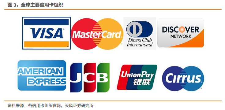 目前,国际上主要有五大信用卡品牌,分别是威士(VISA)卡国际组织、万事达(Master)卡国际组织、美国运通国际股份有限公司(America Express)、大莱信用卡有限公司(DinersClub)以及JCB 日本国际信用卡公司五家专业信用卡公司。此外,还有一些区域性的信用卡组织,如中国的银联、欧洲的EUROPAY 等。