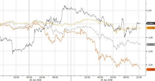 “尸骸蔽野,血流成河,积怨满于山川,号哭动于天地”——在全球贸易战的阴霾之下,隔夜全球金融市场无疑“尸横遍野”!行情数据显示,周二全球股市、大宗商品和债券收益率纷纷下挫,这是迄今为止表明投资者猜测中美紧张局势或升级为贸易战的最明显例证。而展望日内,欧美日澳四大央行的掌门人将齐聚葡萄牙辛特拉举行的欧洲央行论坛,一场央行论战很可能与贸易争端交相辉映,主宰市场接下来的行情!