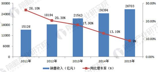 湖北省医药产业2012年-2016年主营业务收入及增幅