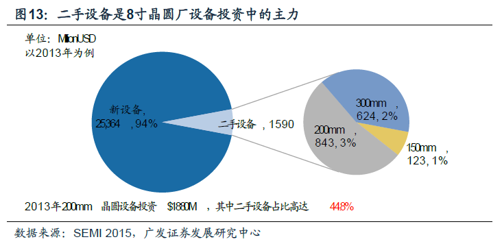 大部分8寸晶圆厂设备已折旧完毕,固定成本较低。8寸晶圆厂的产能在上世纪90年代末期开始提升,大部分晶圆厂现已完全折旧完毕,因此8寸晶圆厂的产品在经营成本上极具竞争力。虽然当前设备供应商不再制造8寸晶圆厂所用的新设备,但是他们通常会与8寸晶圆厂紧密合作,以具有成本效益的方式使设备寿命再延长10~15年。