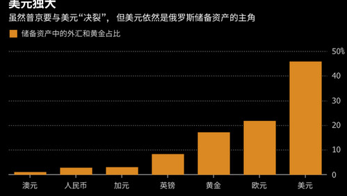 随着美俄关系的持续恶化,俄罗斯央行的“去美元化”进程似乎也在加速。据彭博社报道,在俄罗斯中央银行的外汇和黄金资产中,人民币(6.6693,0.0062, 0.09%)所占份额几乎增长两倍,接近加元的比例;黄金和人民币加在一起,已占俄罗斯央行储备资产的五分之一。
