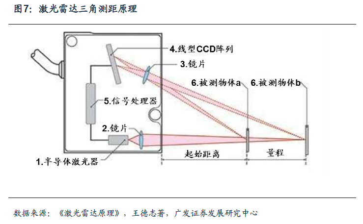 LDS 方案 :技术成熟 ,降低成本是关键 降低成本是关键 降低成本是关键 降低成本是关键。激光雷达SLAM是LDS激光测距传感器与SLAM技术的结合。激光雷达测距LDS的原理是:从半导体激光器以一定的入射角度发射一束或n束激光照射被测物体,激光在物体表面发生散射或折射,通过透镜对反射激光汇聚成像,光斑成像在CCD传感器上(Charge-coupled Device,感光耦合组件)。当物体发生位移时,光斑也将随之产生移动,其位移大小通过信号处理器的计算而获得,由光斑位移距离计算出被测物体与基线的距离值。由于入射光和反射光构成一个三角形,位移计算运用了几何三角定理,故又被称为激光三角测距法。这种方法能够获得精度较高的距离信息。