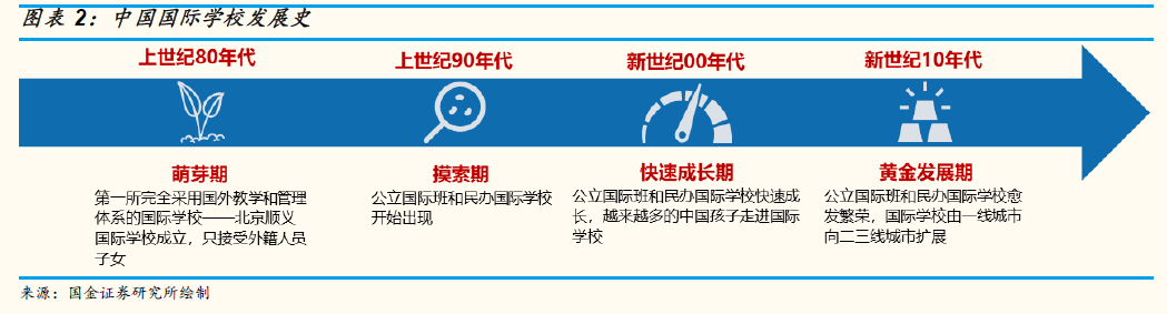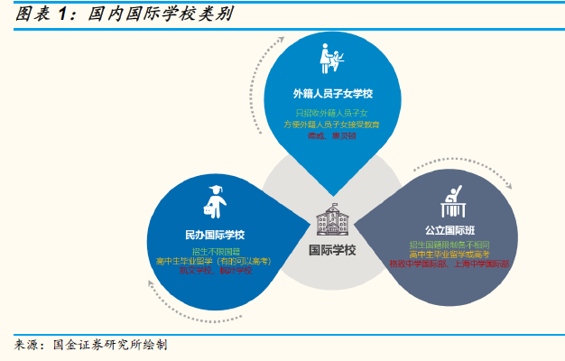 国际学校正处黄金发展期,民办国际学校发展更快。根据新学说数据,国际学校的数量从2010年的384所增长至2017年的734所,年均增长50所。因为外籍人员子女学校受法律制约不得招收境内中国公民的子女,公立国际班被政策限制难以继续扩张,所以近年来国际学校的增长主要来源于民办双语学校。2017年,民办国际学校数量为367所,在三类学校中的占比约50%。考虑到民办国际学校单体在读人数较多,民办国际学校的学生占全部国际学校学生的比例相较学校占比而言其实更大。根据新学说数据计算,2017年民办国际学校在校生数占国际学校在校生总数约73%。