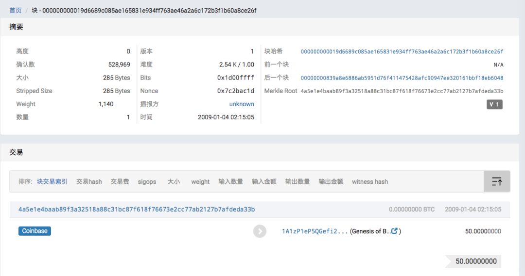 中本聪自己挖矿,由第一个区块奖励来的50个比特币。其中就有历史上第一个比特币。来看看创世区块,hash值是: