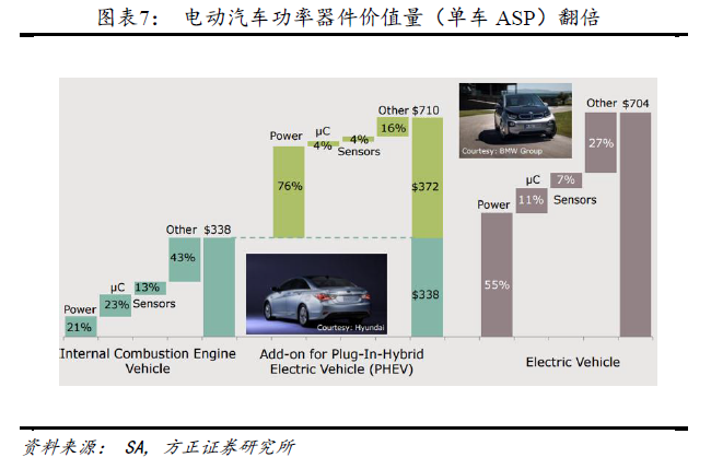 燃油车向电动车转变驱动下,IGBT用量激增。功率半导体是电动车成本占比仅仅次于电池的第二大核心零部件。不同于动力电池产业链已经受到投资者普遍关注,市场对功率半导体的汽车电动化逻辑严重认识不足。