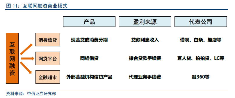 金融超市模式:基于代理业务的手续费收入,主要从事金融产品导流业务,引入多家金融机构的信贷产品(包括帮助银行推广信用卡)、对接用户的借款需求,而后赚取手续费或与金融机构分润实现收入