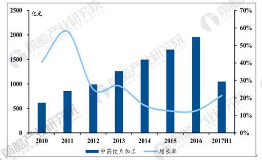 中药饮片由于近几年受质量标准逐渐提升以及行业监管如加强GMP认证和飞检等影响,行业增速趋缓,但行业景气度依然维持较高,行业增速保持10%以上,高于同期医药工业其他子板块增速,2017 年上半年中药饮片市场达到1048亿元,同比增长21.33%,较去年同期13.33%的增速回升明显。从行业发展趋势看,中药饮片行业相对其他子行业,受政策扶持优势明显,预计中药饮片行业未来增速仍将好于行业整体水平。