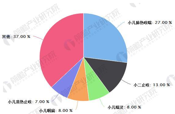 细分来看,在中国城市零售药店终端中成药儿科用药市场中,销售规模最大的三个亚类分别是儿科止咳祛痰用药、儿科感冒用药以及儿科厌食症用药,2016 年的市场份额分别是40.28%、24.27%、17.75%。