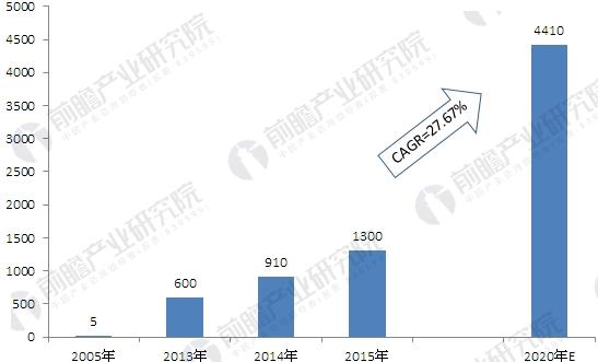 2005-2020年中国车联网用户规模趋势(单位:万户)