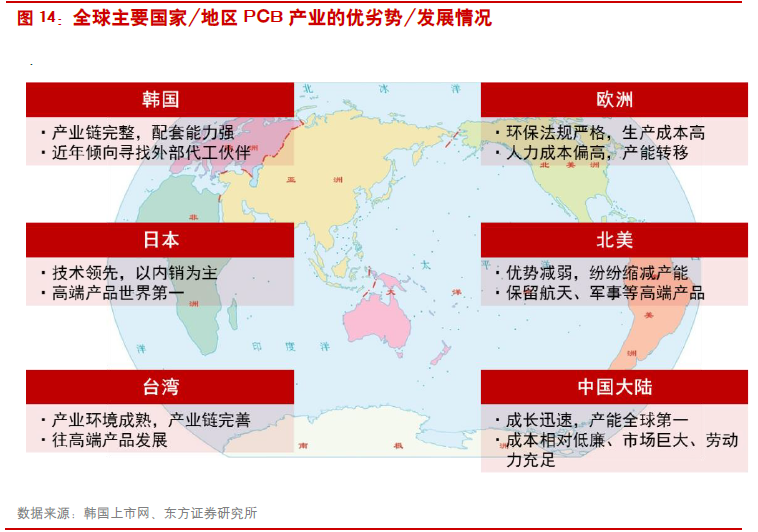 大陆PCB 产业链完善助力本土产业发展。大陆已形成较为完善的PCB 产业链,在生产设备和成本占比较大的原材料环节均有相关厂商布局。随着全球PCB 产业持续向大陆转移,完善的产业链结构将助力大陆PCB 产业发展。