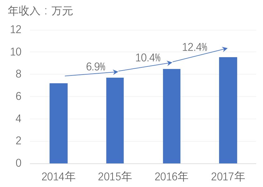 但是,随着政策的变化、经济的发展,医生涨薪是趋势。比如,2016 年度医生人均年薪是 8.5 万元,2017 年度则增长 12.4% 上涨至 9.55 万元。