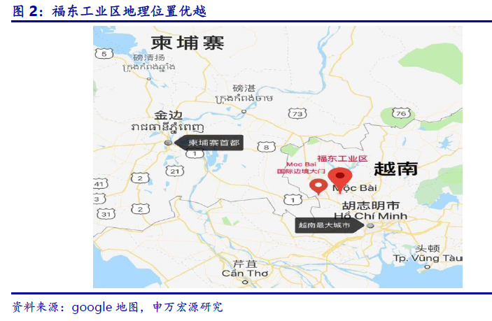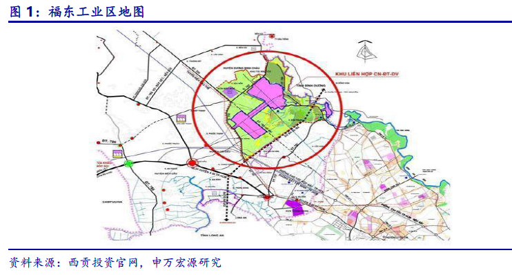 福东工业区所在的西宁省位于柬埔寨和越南的交界处,交通与贸易较为便捷,处于战略性地理位置。工业区距离柬埔寨首都金边188KM,约4 小时车程,距离柬埔寨与越南的Moc Bai 边境大门约20 公里,半小时左右车程,离胡志明市52KM,约两小时车程,离Trans-Asia 高速10km。 西宁省是越南西部大门以及南部主要经济区,柬埔寨,泰国和其他东南亚联盟国家都经过 Moc Bai 国际边境大门。以其命名的西宁边界线长240 公里,连接柬埔寨的3 个省市,是连接越南、柬埔寨和泰国的文化经济中心。