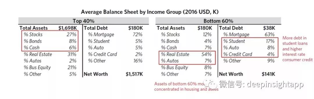 分析消费品行业,初级层次是对“需求、产品与渠道”的理解,中级层次是对“业绩释放周期”的判断,高级层次是对“商业模式”的洞察。而这些分析思考,跟你平时的工作,应该是相关和互补的,美国在过去的三十年里,中产收入停滞,中下阶层收入下降,只有高收入阶层收入增长,而他们收入来源的大部分不是工资,而是投资、股权一类的资产增值。
