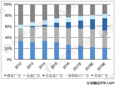 视频贴片广告一度迅速崛起,但是2015 年以后,广告主意识到这种广告形式的转化率较低,其市场份额也停滞不前。现在,增长潜力最大的无疑是信息流广告,微博、腾讯广点通、今日头条都受益于信息流广告的强劲需求,它的市场收入占比有可能在2-3 年之后超过搜索引擎广告。