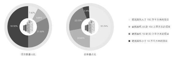 虽然养老地产市场多数为小体量项目,但是在市场总供应体量中,50.24%的来自于大体量项目(建筑面积大于 150万平方米的项目)的供应。小体量项目(建筑面积小于 10万平方米的项目)虽然数量上占多数,但是整体只供应了市场总体量的 5.14%。