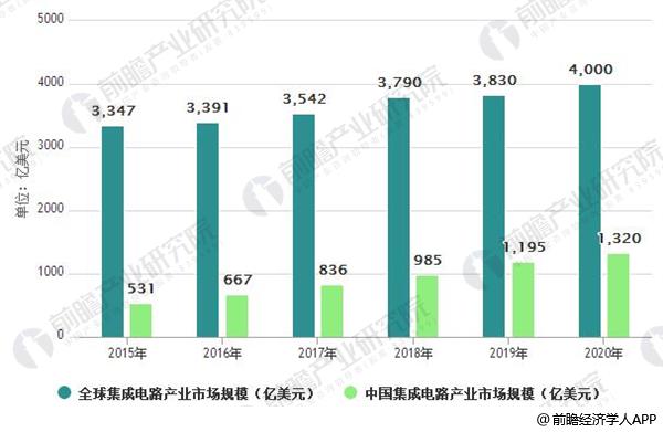2015-2020年全球/中国集成电路产业市场规模/亿美元