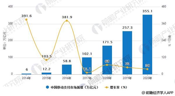 据前瞻产业研究院发布的《移动支付行业发展趋势与投资决策分析报告》数据显示,2016年中国移动支付交易规模达到58.8万亿元,同比增长率超300%,达381.9%。随着智能手机的普及和二维码支付市场的爆发,消费者从PC端向移动端的迁移速度加快,预计2018年中国移动支付交易规模将超150万亿元,达到171.5万亿元,增长率为68.0%。