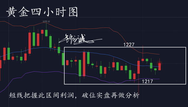 今日黄金不破1236-1215区间多单建议1215附近去做,止损1210,止盈1220-1224附近,1210挂单多,止损1208,止盈1219。空单可放在1222和1225附近去做,止盈1217-1215附近,策略是实时的,仅供参考,具体点位实盘通知。