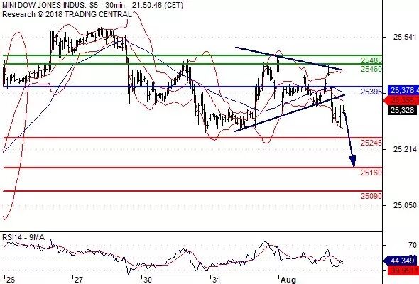 交易策略: 在 25395.00 之下,看跌,目标价位为 25245.00 ,然后为 25160.00 。
