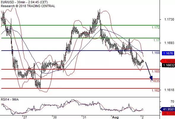 交易策略: 在 1.1680 之下,看跌,目标价位为 1.1650 ,然后为 1.1635 。