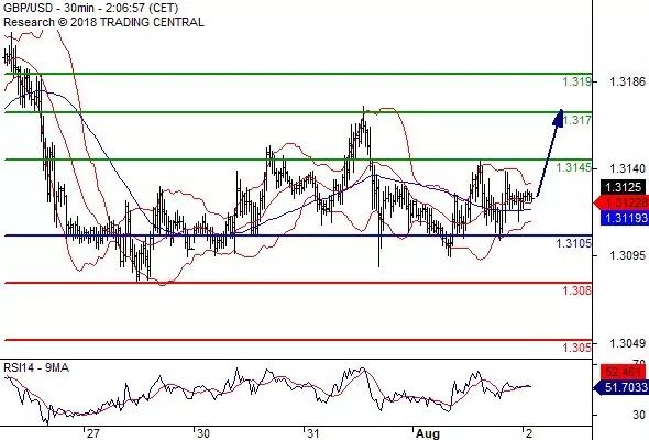 交易策略: 在 1.3105 之上,看涨,目标价位为 1.3145 ,然后为 1.3170 。