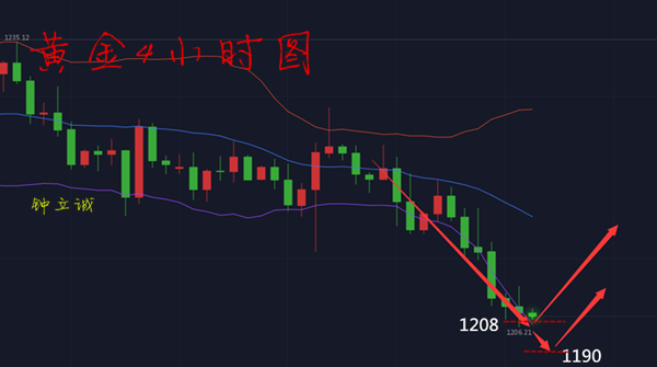 那么我们有预期方案,就是月线6线支撑1190上方,只要今晚和下周一支撑在1190美元上方也就是6线上方我们都是看中期反弹!