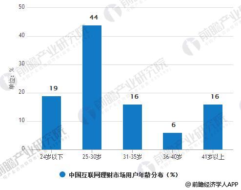 互联网理财用户年龄分布来看,占比最大的是25-30岁的年轻人,占比为44%,其次为24岁及以下的年轻人,占比为19%。