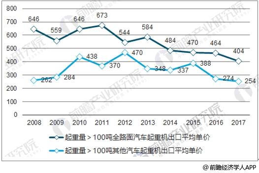 据前瞻产业研究院发布的《起重机制造行业市场需求预测与转型升级分析报告》数据显示,2010年以来,小吨位汽车起重机销量占所有汽车起重机销量比重逐渐降低,于2015年达到阶段性底部69%,并始终保持在80%以下。大吨位汽车起重机在2017年实现了销量触底反弹,大于60吨的汽车起重机占总体汽车起重机销量达到22%,大吨位起重机占比增加的趋势强化了企业的盈利能力。