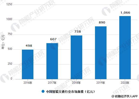 根据前瞻产业研究院发布的《智能交通行业市场前瞻与投资战略规划研究报告》数据显示,2014年包含电子警察、卡口、交通视频监控、交通采集与诱导、交通信号控制、交通类平台、GPS与警用系统、出租车信息服务管理系统、客运枢纽信息化、智能公交在内的10个细分行业市场规模为246亿元,同比增长25%。综合以上因素,到2016年中国智能交通行业市场规模将达到498亿元,未来五年(2016-2020)行业年均复合增长率约为20.97%,2020年中国智能交通行业市场规模将达到1,066亿元。