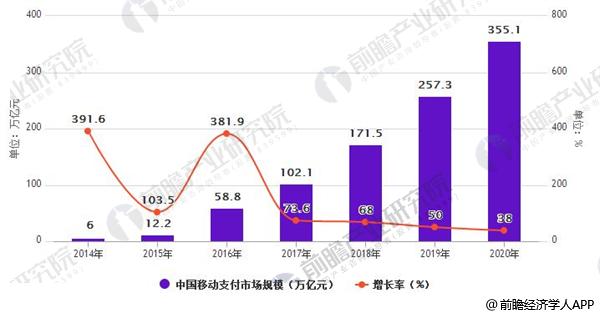 2014-2020年中国移动支付市场规模预测及增长情况