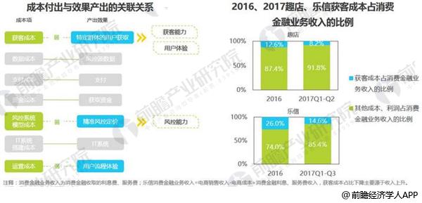 在互联网消费金融业务的成本中,部分成本支出与交付效果的关联不具备强关联关系,不同公司在这些方面付出成本后产生的效果差异较大,二产生差异的原因便在于企业相应的能力,距离来说,消费金融机构付出获客成本,最理想的长处效果是获取特定的目标用户群体,但由于企业获客能力各异,从而成本付出后获取的收入规模各有差异。2016年,趣店、乐信的获客成本占消费金融收入的比例分别为26%、12.6%,二者获客成本差异较大,趣店凭借支付宝的导流实现低获客成本,成本与效果的观念关系决定了互联网消费金融三大关键能力,及获客能力、用户体验、风控能力。