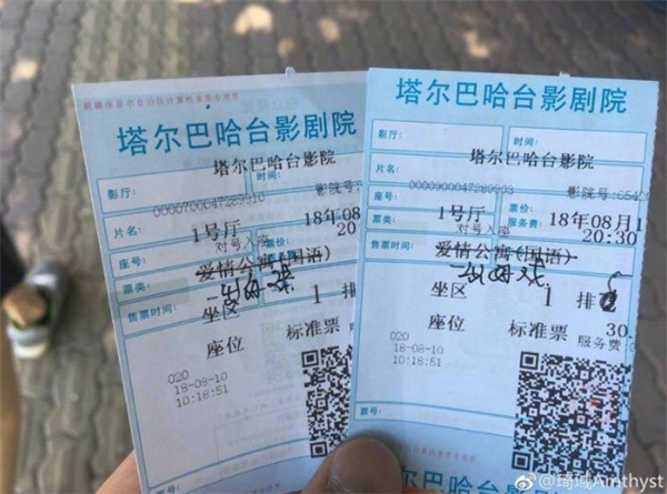 另一个网友遭遇的常见操作是手写票,即网友买的是《一出好戏》,但打出来的票是《爱情公寓》,于是影院工作人员又用笔将之改为《一出好戏》,最终观看的也是《一出好戏》,@中国电影报道 晒出来的那两张票就是这种情况。