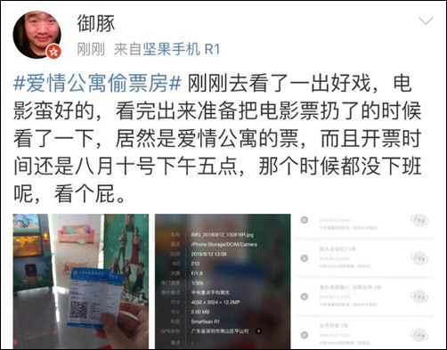 看完这些票根,许多网友感到非常愤怒,认为《爱情公寓》偷票房“可耻”,对观众连基本的真诚都没有。