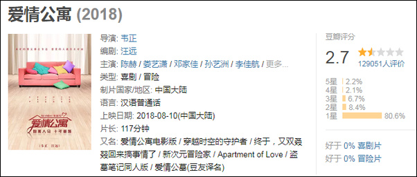 以“情怀”为卖点的《爱情公寓》电影,虽然豆瓣评分只有2.7,最开始的票房走势却非常喜人。