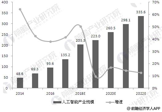 随着相关政策的加速落地,我国人工智能产业已步入新的发展阶段。当前人工智能行业基础条件已经具备,随着深度学习算法日趋成熟以及数据资源的加速增长,人工智能技术有望不断提升,机器视觉和自然语音处理等人工智能技术将迎来发展新机遇,预计到2022年,我国人工智能产业规模将达到335.6亿元。