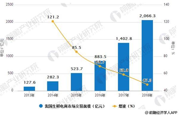 2013-2018年我国生鲜电商市场交易规模及增长情况